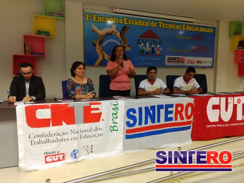 10/06/2017 - A abertura do evento teve na mesa principal o presidente do Sintero, Manoel Rodrigues da Silva; a Secretária-Geral da CNTE, Fátima Silva; o Coordenador do programa Pro funcionário no IFRO, David Barros; a Secretária de Funcionários de Escolas,
